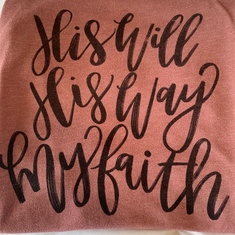 This shirt is so cute and has the massage “His will, His way, my faith”. It’s gently worn, no damage or markings. Comes from a smoke and pet free home.