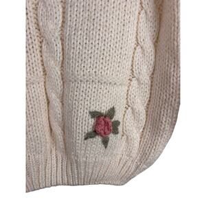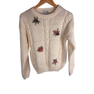 Hand Loomed Currants Vintage Chunky Knit Flower Ivory Sweater Medium Cottagecore