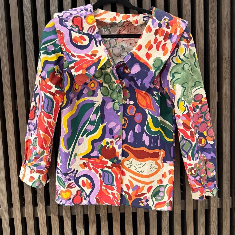 Hand Made wide collar unique colorful festive shirt