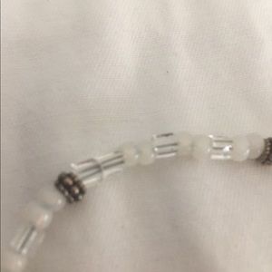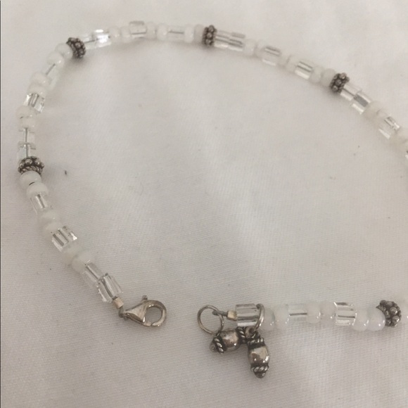Sterling Silver on wire with white and clear beads with sterling silver beads and a charm on the end