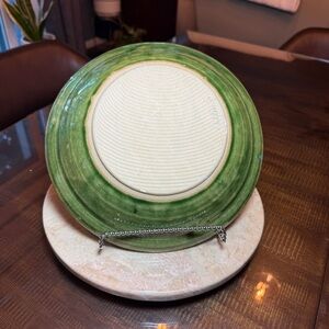 Vibrant green and blue ceramic plate with a textured design. Perfect for adding a pop of color to your table setting.