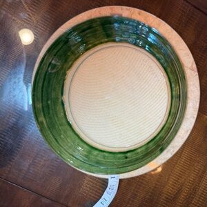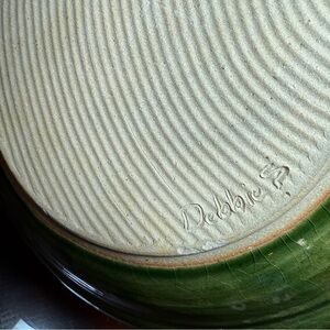 Hand Made Art Pottery Clay Bowl Artist Signed Turquoise & Green 11” Diameter