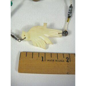 Hand Made Beads Necklace Charms Boho Fetish Stone Carved Bird 86 in Long Wrap