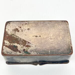 Good quality heavy gauge metal. Measures 3" x 5" x 1.5", with hinged lid. There is an engraved crest on the lid with the latin words "In Vita Veritas" which translates to In Life there is Truth.