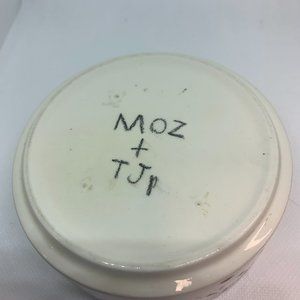 Hand Made Brown Dog Face with Blue Eyes Ceramic Trinket Box.