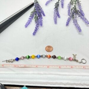 Hand Made Cats Eye Moonstone Multicolor Beaded Breast Cancer Ribbon Bracelet
