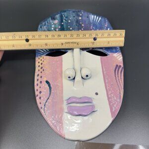 Hand Made Ceramic Wall Art Mask Decor New Orleans Artist Signed Perry Morgan VTG