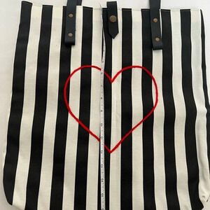 Hand Made Cotton & Leather Embroidered Heart Love Stripped Bag Tote New