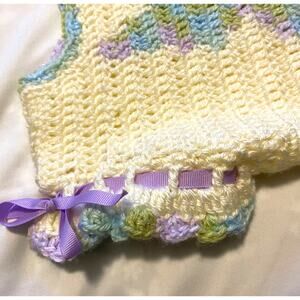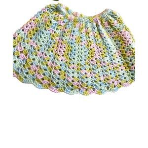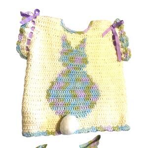 Hand Made Crocheted 2-piece Skirt Set Bunny Spring Easter Girls 24 mo cream blue