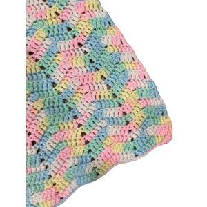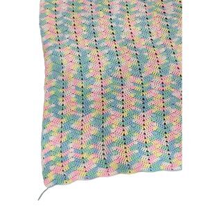Hand Made Crocheted Baby Afghan Blanket Blue Pink, Yellow and White