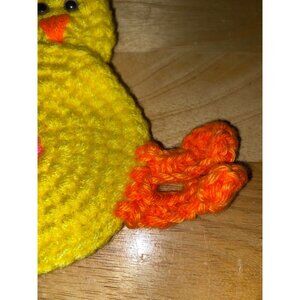 Hand Made Crocheted Yellow Chicken Butt Shaped Hot Pad Trivet Coaster Cork Back