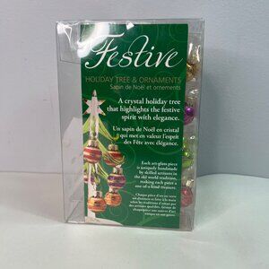Hand Made Crystal Art Glass Holiday Christmas Trees + 12 Colorful Ornaments
