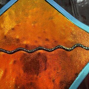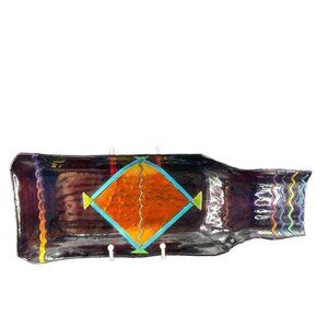 Hand Made Dichroic Art Glass Fused Iridescent Finish Long Bottle Bowl Dish Shape