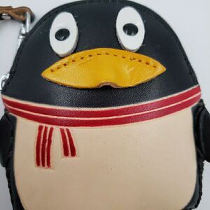 Hand Made Embossed Genuine Leather Penguin Coin Purse Wristlet Wallet Pouch