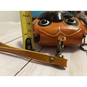 This hand-made brown leather dog coin purse features an embossed design of a bull dog, making it a perfect accessory for dog lovers. The wristlet has a magnetic snap and zipper closure, with a small size ideal for carrying coins and other essentials. The brown leather exterior and lining add to the stylish and casual aesthetic of the purse, making it a versatile accessory for everyday use. With features like a removable strap, key ring, and multiple closures, this unique coin purse combines functionality with a touch of charm for the fashion-forward woman on the go.