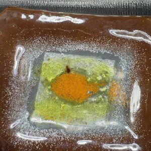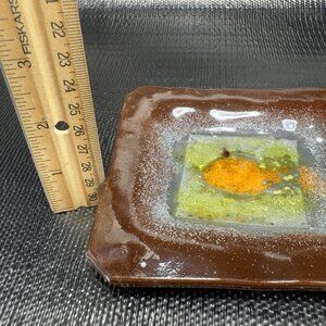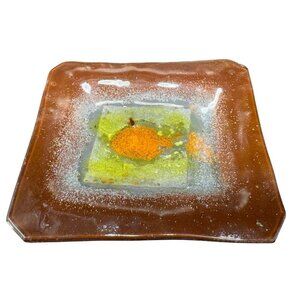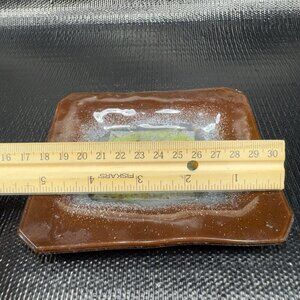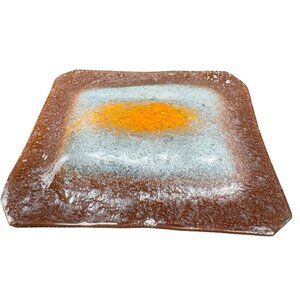 Hand Made Fused Art Glass Dish Plate Trinket Holder Multicolor Bubbles Hand Made