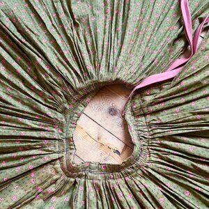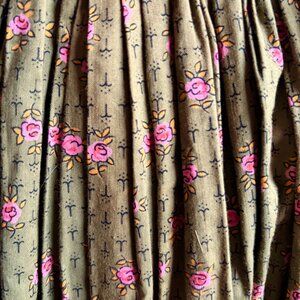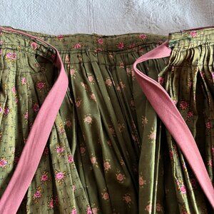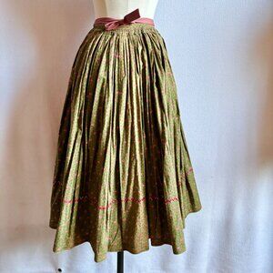 Hand Made Green & Pink Sprig Print Floral Cotton Full Folk Dance Skirt
