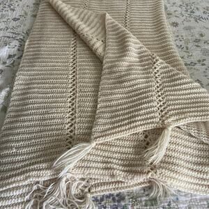 Hand Made Ivory Oatmeal Cream Colored Afghan Throw 88x56