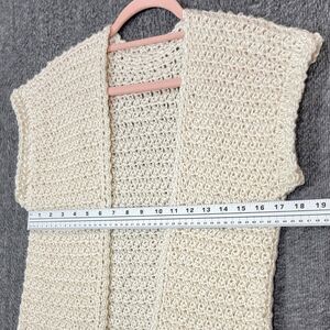 Hand Made Knit Sweater Vest Womens Small Ivory Crochet Open Front Cardigan