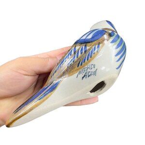 Hand Made Mexican Pottery Large Bird Figurine Artist Signed Folk Art Tonala VTG