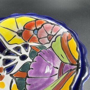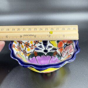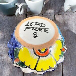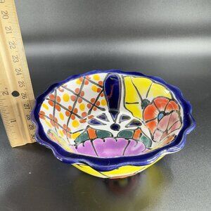 Hand Made Mexico Pottery Dish Bowl Hand Painted Folk Art Lead Free Bowl Vintage