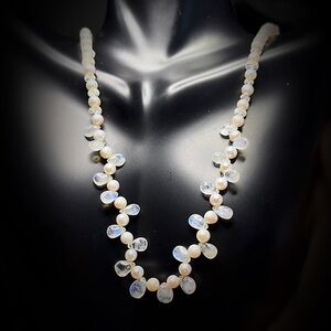 Genuine Moonstone & Freshwater Pearl Necklace!