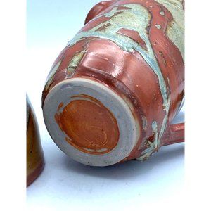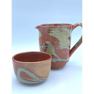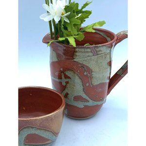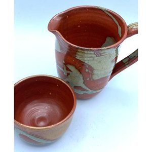 Beautiful Hand Made Pottery Art Large Mug Pitcher With Small Matching Bowl /Cup