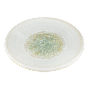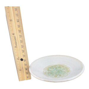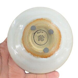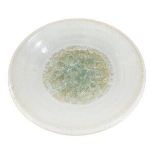 Hand Made Pottery Dish Bowl White Ceramic W Crystalline Light Green Center JUNE