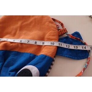 Has some discoloring on the fin, see photos for details. Has no tag, assuming it's homemade. Feels like a soft cotton.