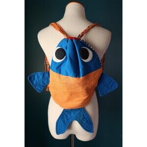 Hand Made Quilt Style Fish Purse Bag Drawstring Backpack Hippy Eclectic Quirky