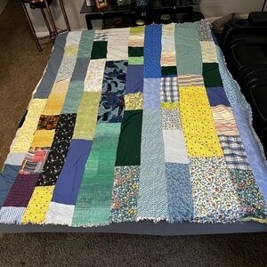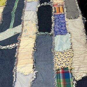 The part between the blocks look like a ruffle and the more you wash it the fluffier it gets.