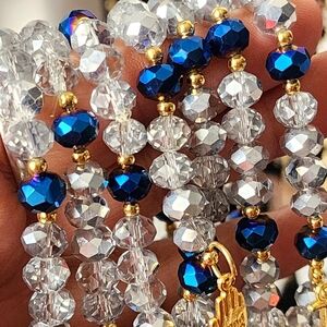 Hand Made Set of 7 AB Blue Crystal Glass Bracelets with Gold Charms Semanario