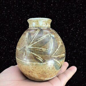 Hand Made Stoneware Pottery Ceramic Vase Hand Crafted Brown Flower Design VTG