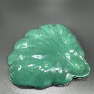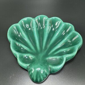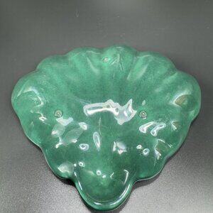 Hand Made USA Pottery Stoneware Green Shell Dish Soap Holder Trinket Dish VTG