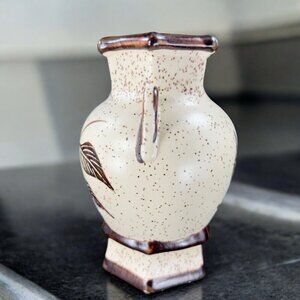 Hand Made USA Pottery Vase Vessel With Brown Speckled Glaze Marked P Vintage