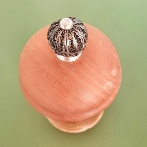this is a hand made item. urn was made in the 2010s but the metal lid top is vintage. small split in the wood. urn was given to me as a gift by the artist but has never been used.