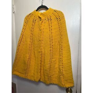 Adorable Hand Made Women's Yellow Hand Knit Button Front Cape - OS