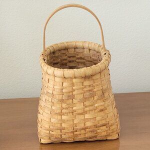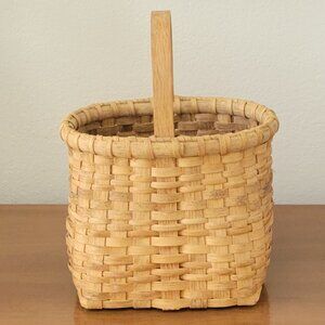 Hand Made Woven Split Wood Wine Basket Sturdy Unsigned Vintage Farmhouse