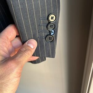Good condition but a couple small faults: Small tear on right sleeve, broken button on left cuff.