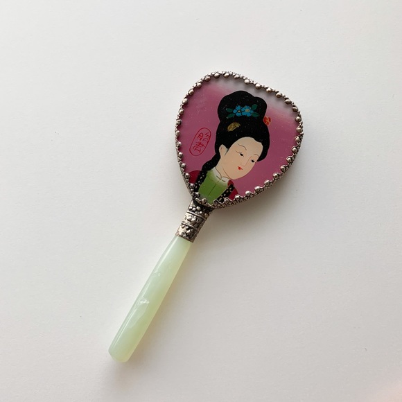 Hand mirror with Asian inspired details Great to keep on your vanity or even in your purse