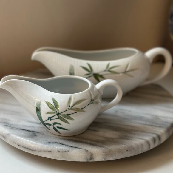 Hand Painted Bamboo Made in Japan Gravy Boat and Creamer