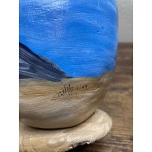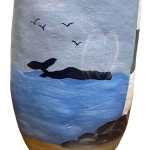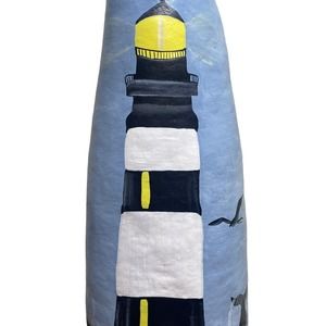 Introducing a stunning, one-of-a-kind hand painted beach lighthouse that will add a touch of nautical charm to any space. This large 20-inch numbered gourd is intricately designed and crafted by skilled artisans in the United States. The brand, Handmade, ensures that each piece is unique and of the highest quality.