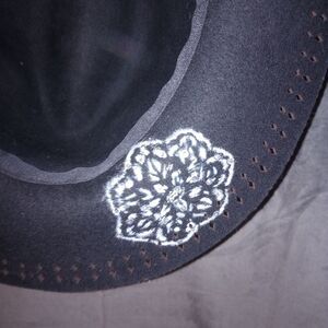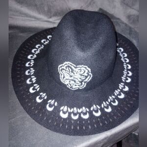 Hand Painted Black Wool Floppy Brim Fedora Hat with Bling