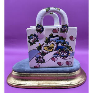 Hand Painted Bloom- Rite Ceramic Small Shopping Bag Home Decor Vase/Planter