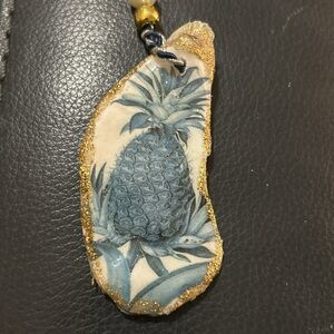 Hand Painted Blue Pineapple Oyster Shell Ornament. See measurements in pics. Unique and beautiful!