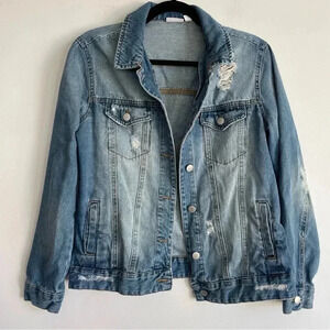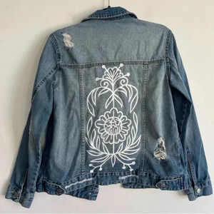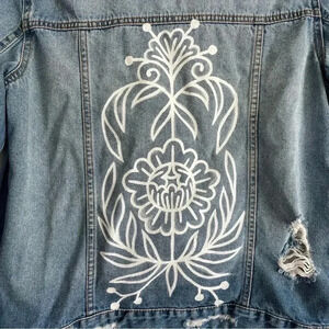 Hand Painted Blue Planet Jean Jacket Distressed Denim Outerwear One of a Kind