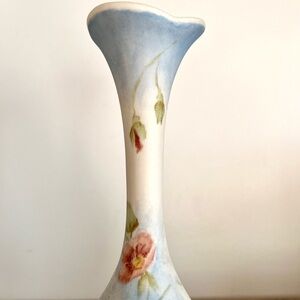 Hand painted beautiful vase with blue background and floral design. Delicate beautiful piece! No chips or cracks. Please view all photos.