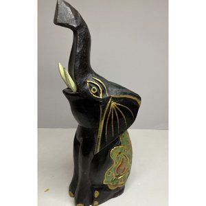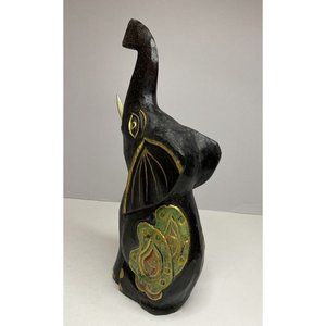 Hand Painted Carved Wooden Elephant Figurine Statue Rustic Hand Primitif Asian