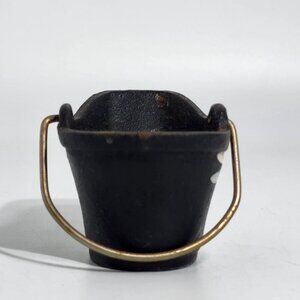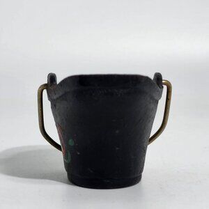 This miniature bucket features a delicate hand-painted bird design on sturdy cast iron. The brass handle adds a touch of rustic charm, making it a unique decorative piece. The antique craftsmanship and subtle details make this item a timeless collectible for enthusiasts of vintage decor.