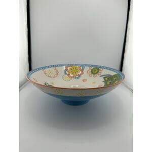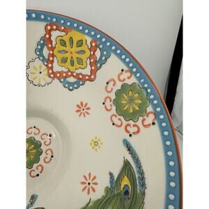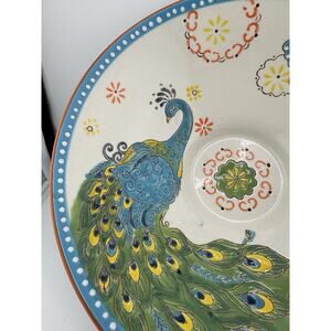 Hand Painted Ceramic Footed 10" Bowl with Peacock Design Raised Decorations